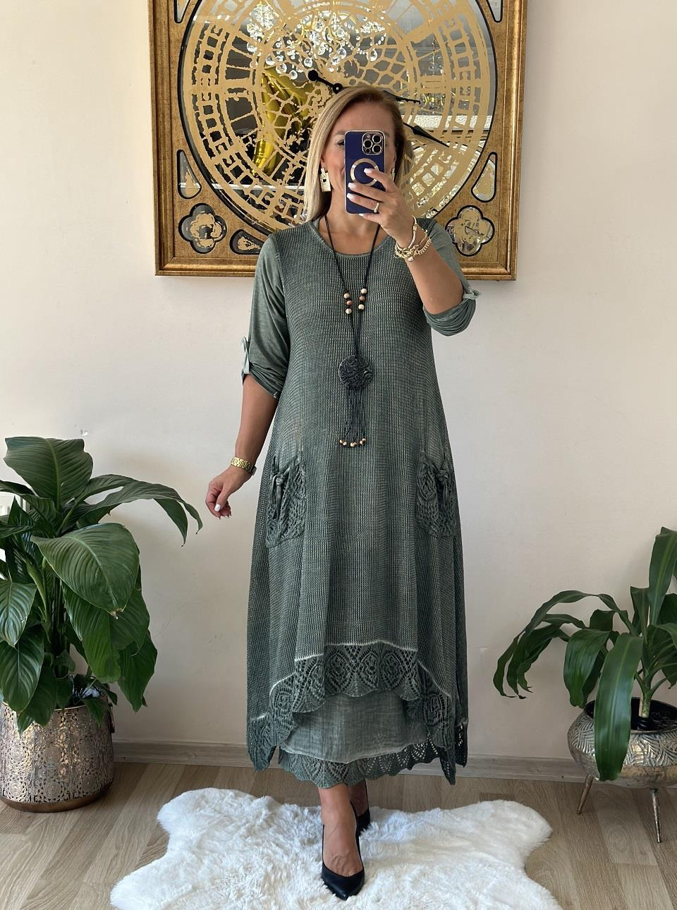 137 Maksi Boy Çift Cep Detaylı İki Parça Elbise