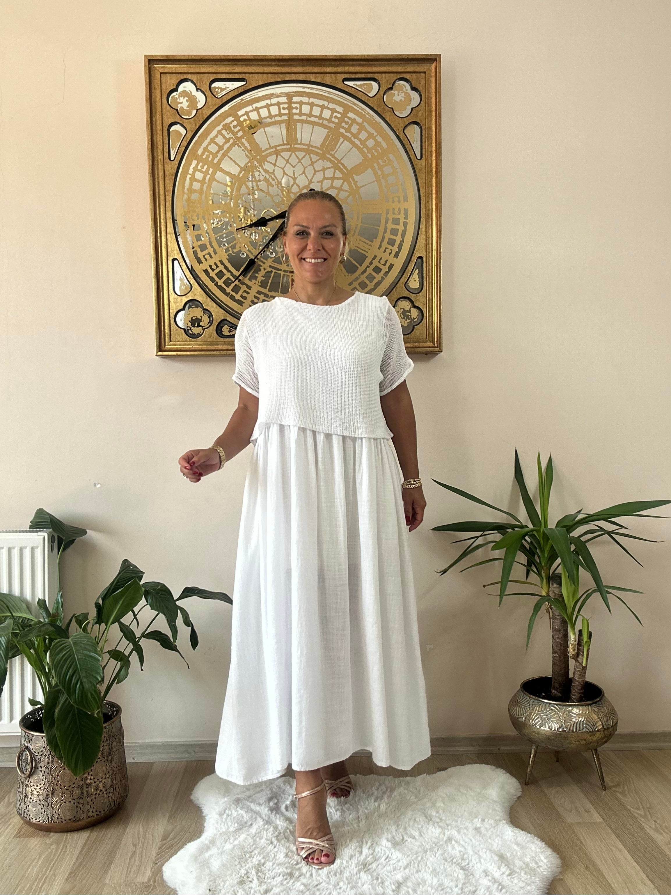 340 İtalyan Pamuk Keten Elbise Beyaz