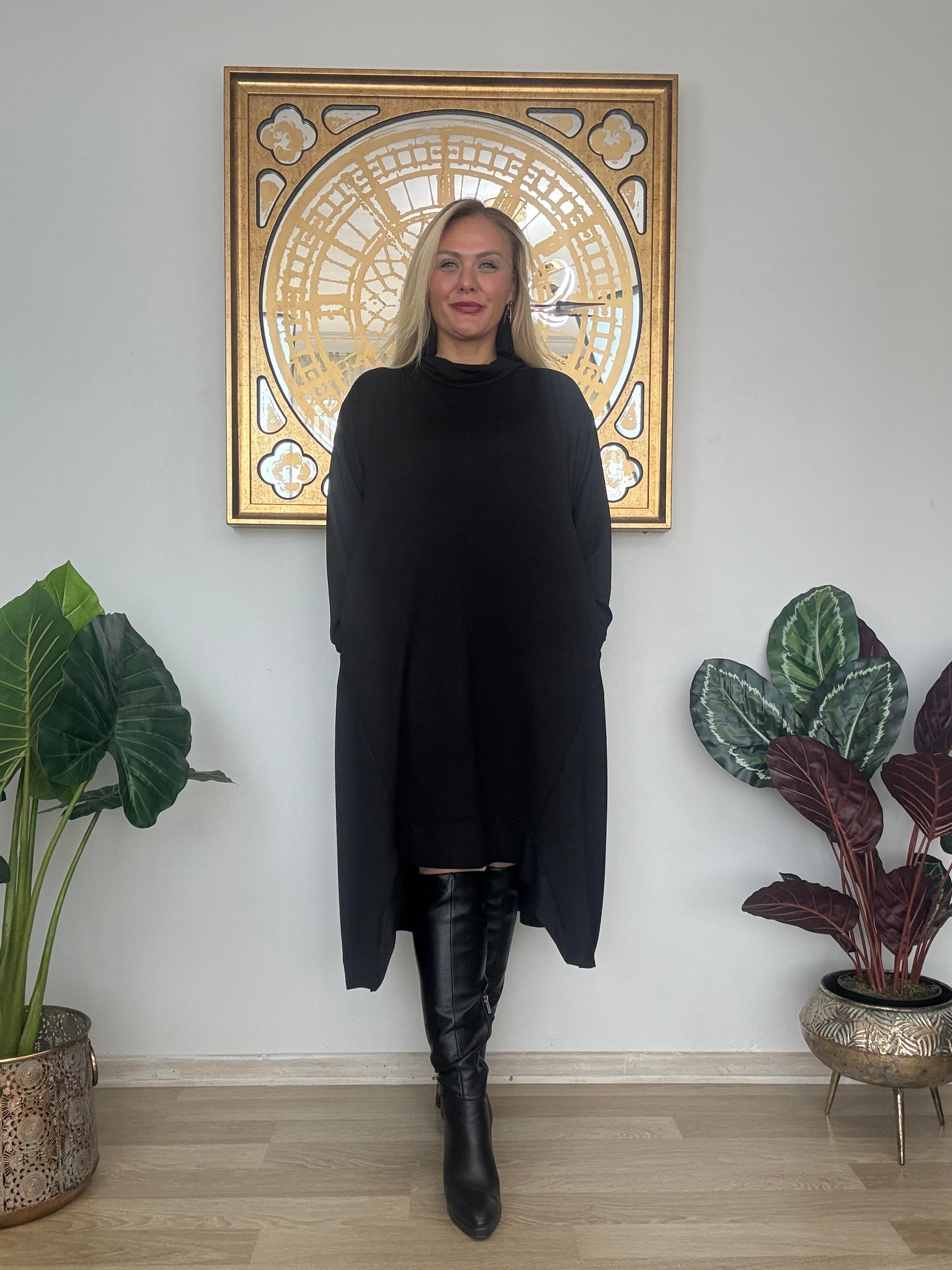 571 Asimetrik Kesim Şal Yaka Elbise